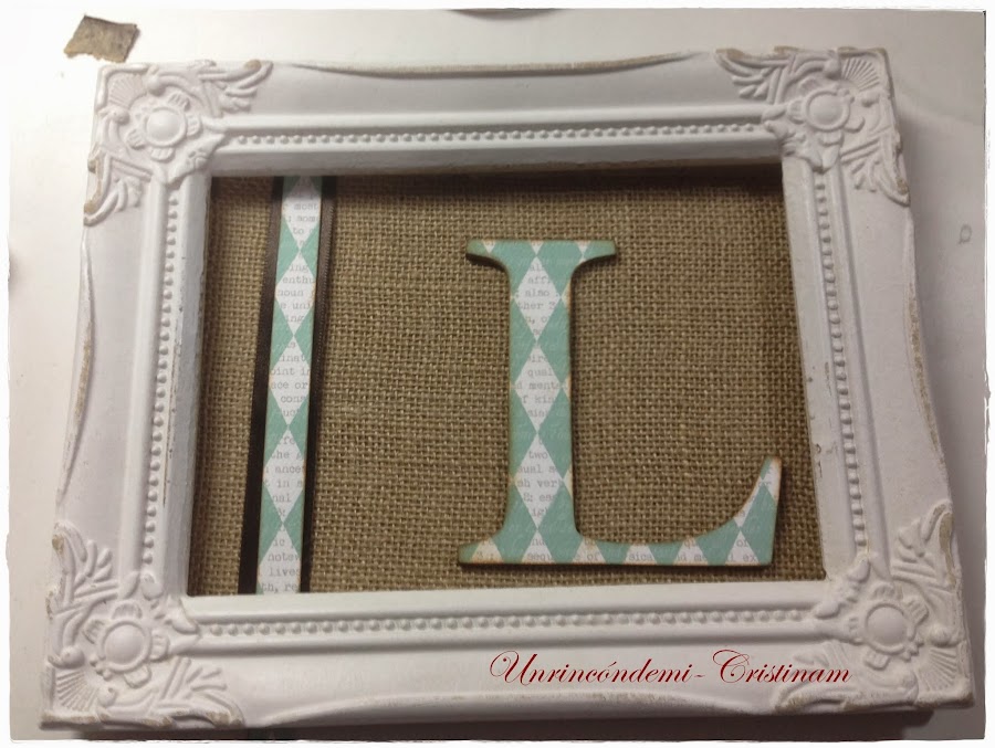 He quitado el cristal del marco y he forrado el fondo con tela de saco, arpillera....