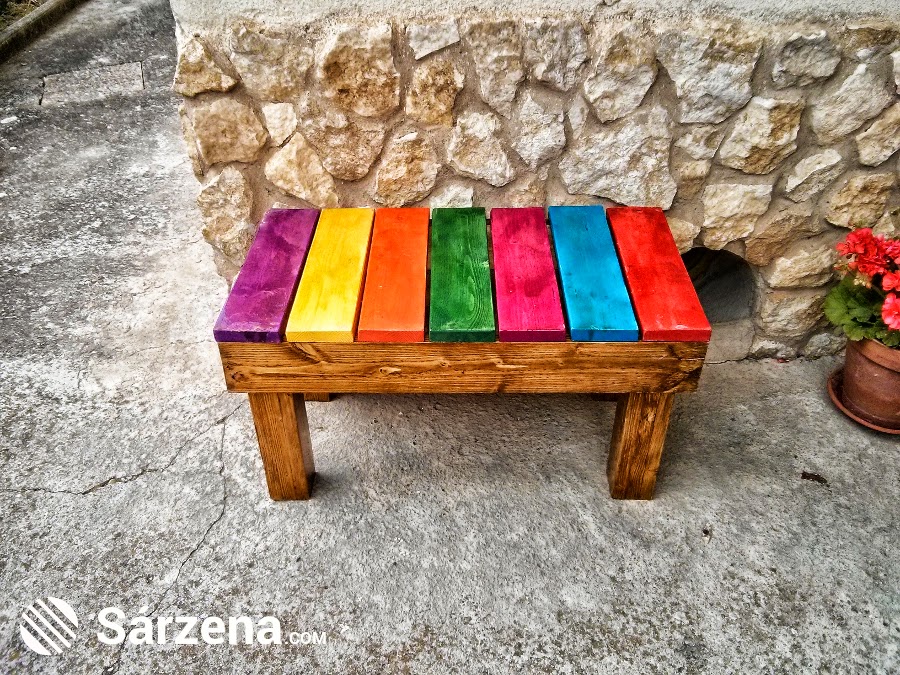 Y como habéis podido apreciar en la primera imagen este es el resultado, un colorido y pequeño banco en la puerta de casa. En vez de hacer uno grande hemos optado por dos pequeños, lo único que su hermano gemelo todavía no esta terminado. Esperamos que pronto os podamos enseñar el jardín al completo, con los dos bancos, muchas flores y alguna que otra sorpresa más.