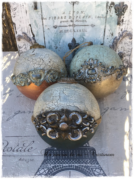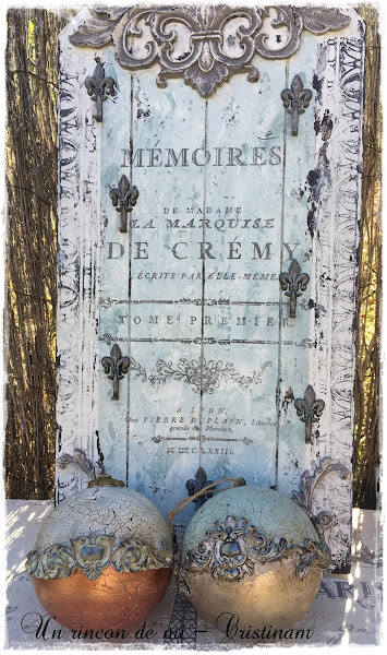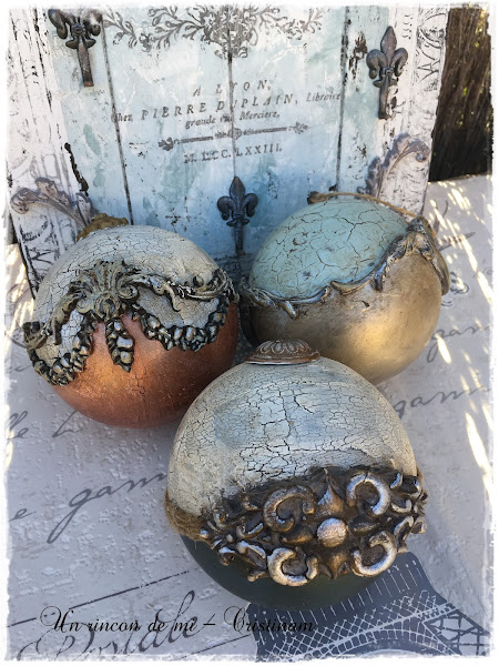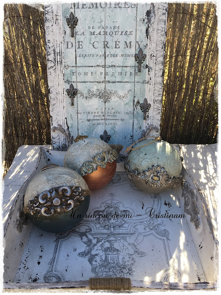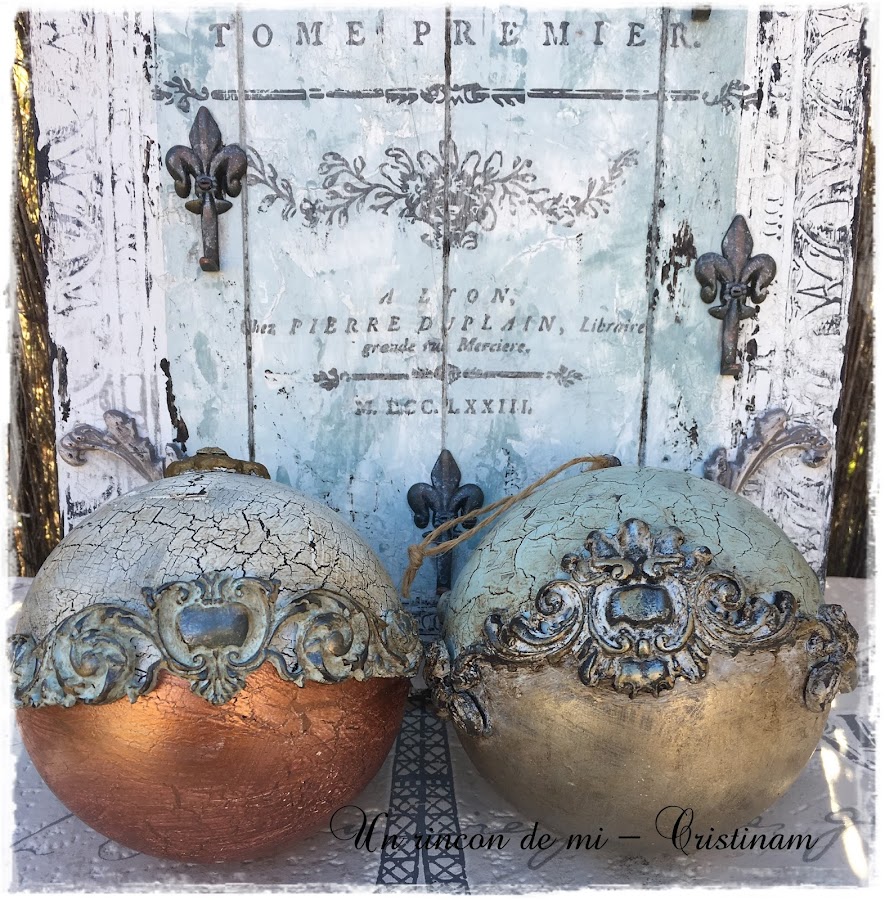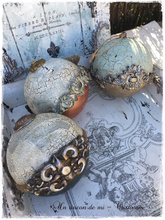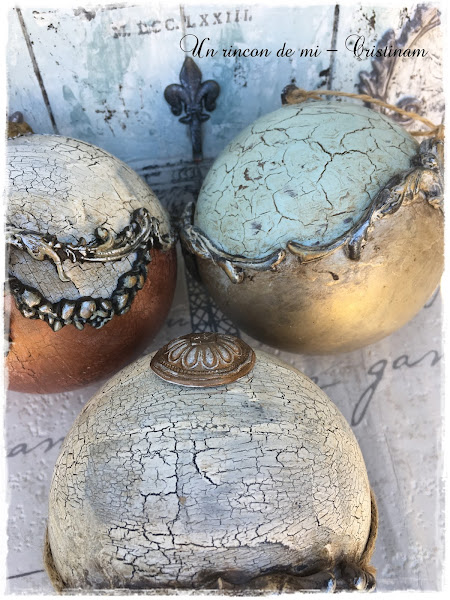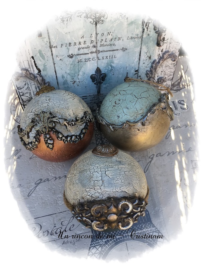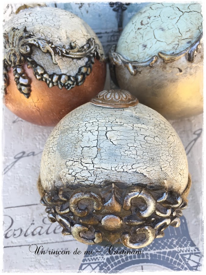 En esta entrada os muestro unas bolas de plástico que he decorado en este estilo que últimamente tanto uso.