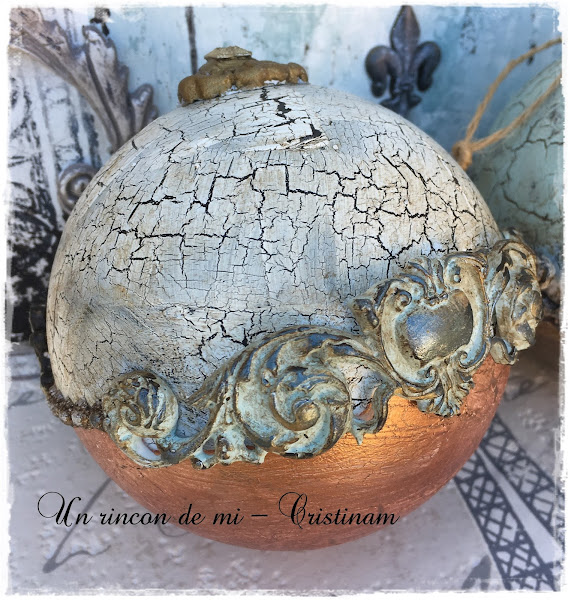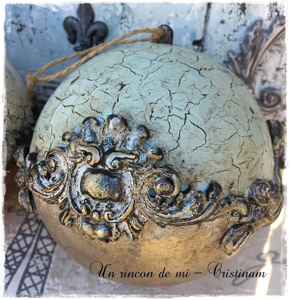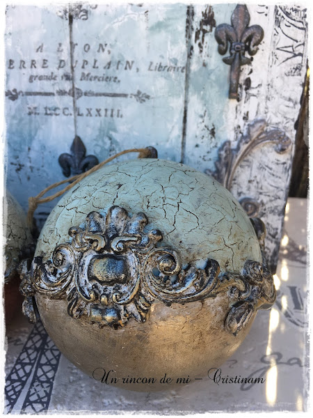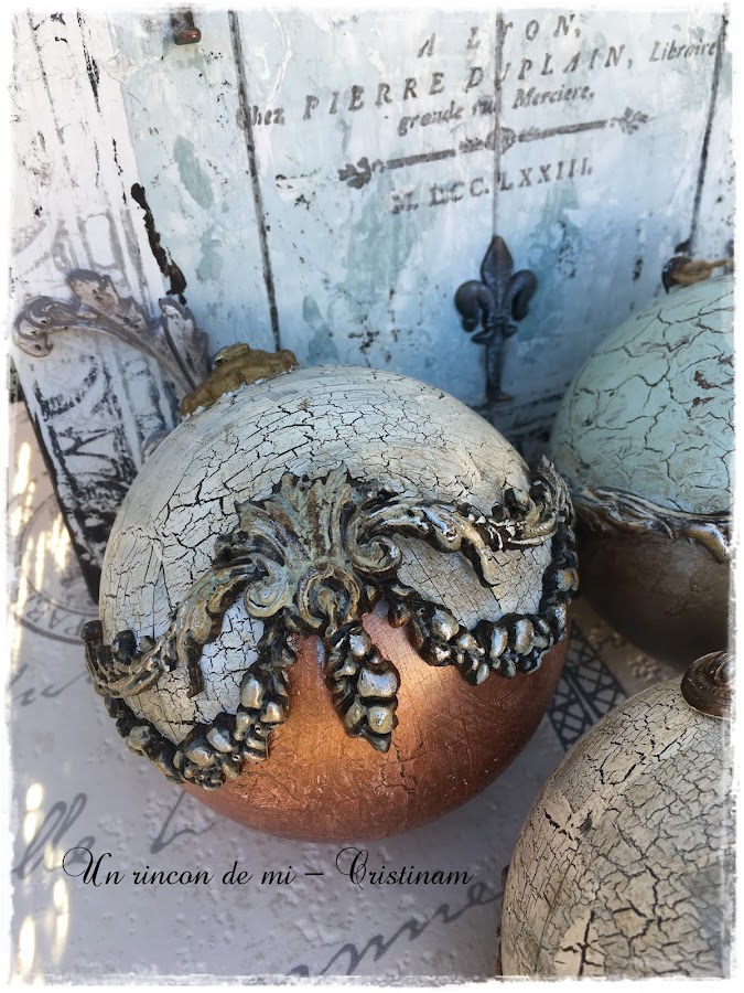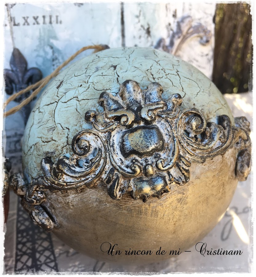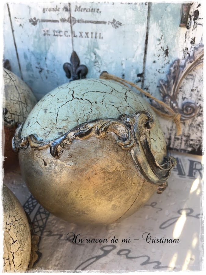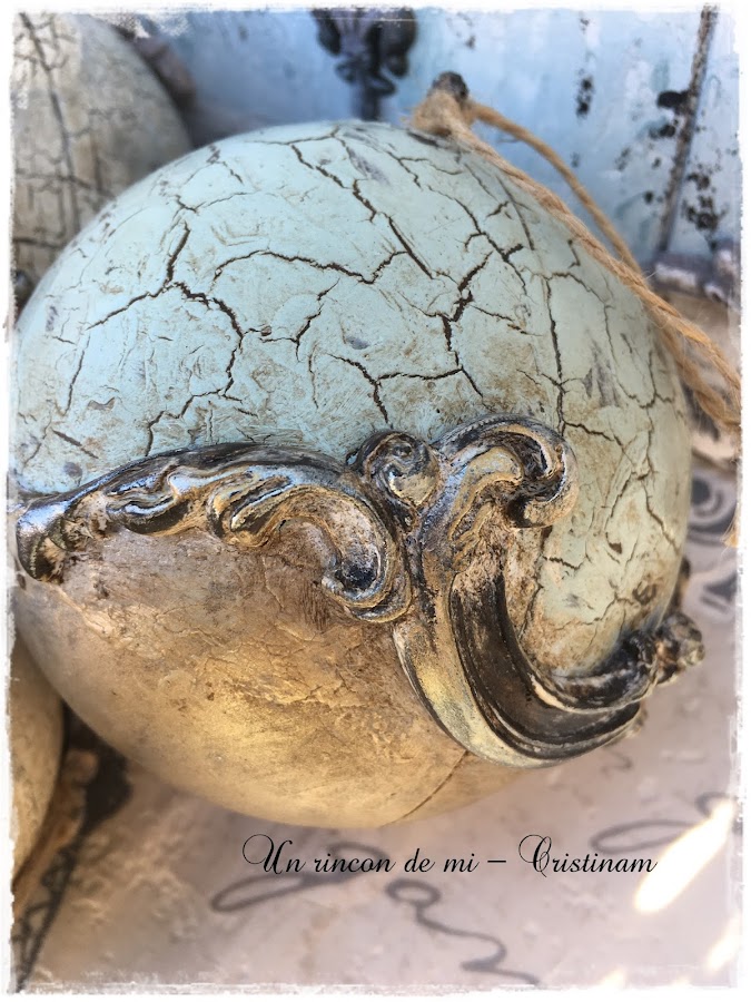 Esta bola es mi favorita.. tiene en la parte superior un color mint que al craquelar y poner pátina oscura encima queda divina!!!
