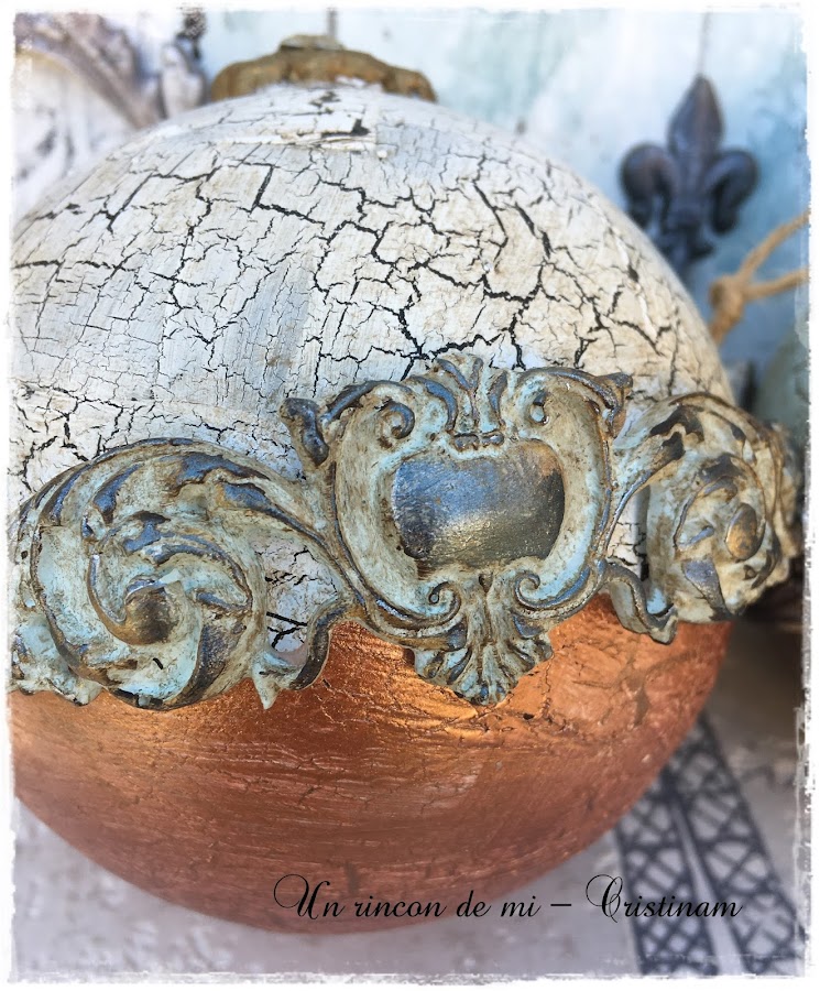 El craquelado y los tonos metálicos quedan muy bien en este tipo de adorno