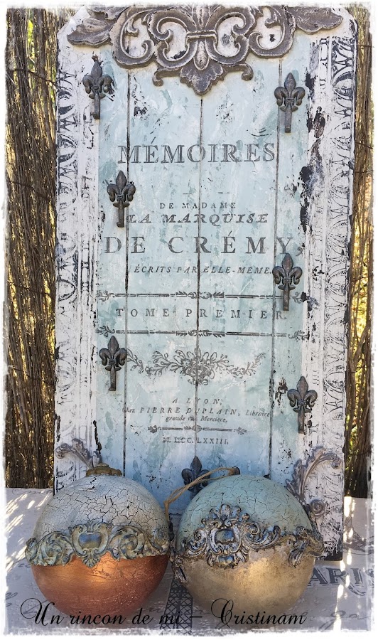Los adornos que he puesto llevan varias capas de distintas pátinas y pinturas hasta obtener el aspecto que yo deseaba.