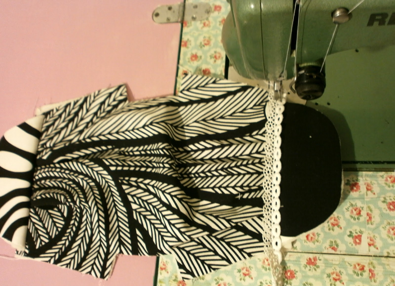 Y con la máquina unimos las piezas, añadiendo una cenefa para darle un aire más retro
