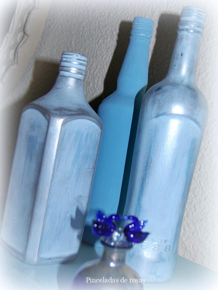 Las Botellas ya sean cristal o de vidrio me apasiona decorarlas convertirlas en jarrones floreros violeteros en botella para licores