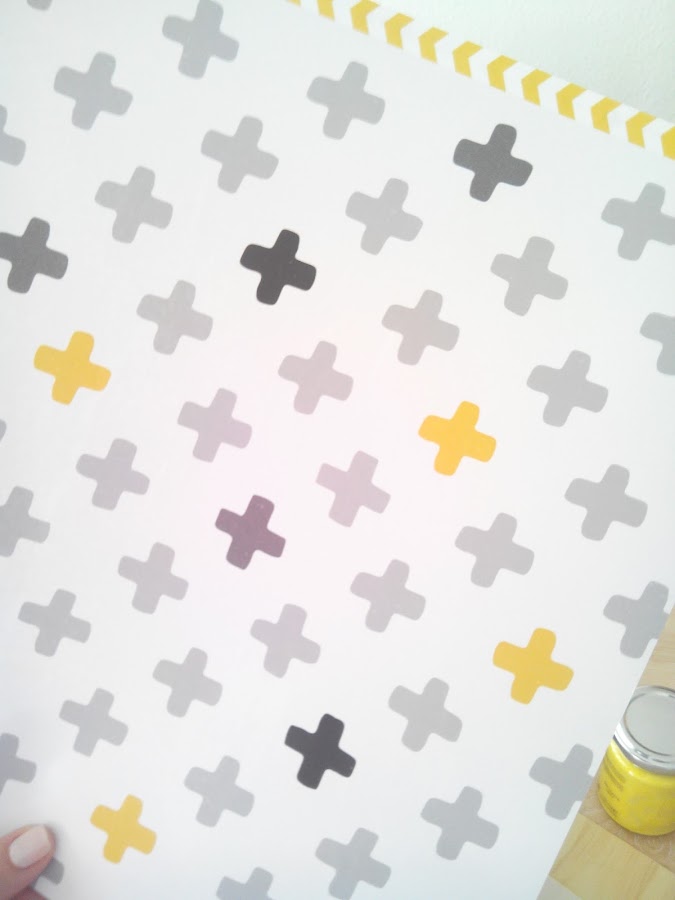 El proceso es el de costumbre cuando pintamos con la pintura de tiza y después estarcimos. Esta vez