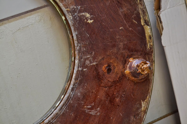 Una vez transcurrido el tiempo establecido, tapamos todos los agujeros, arreglamos la pata rota, saneamos la madera y la barnizamos.