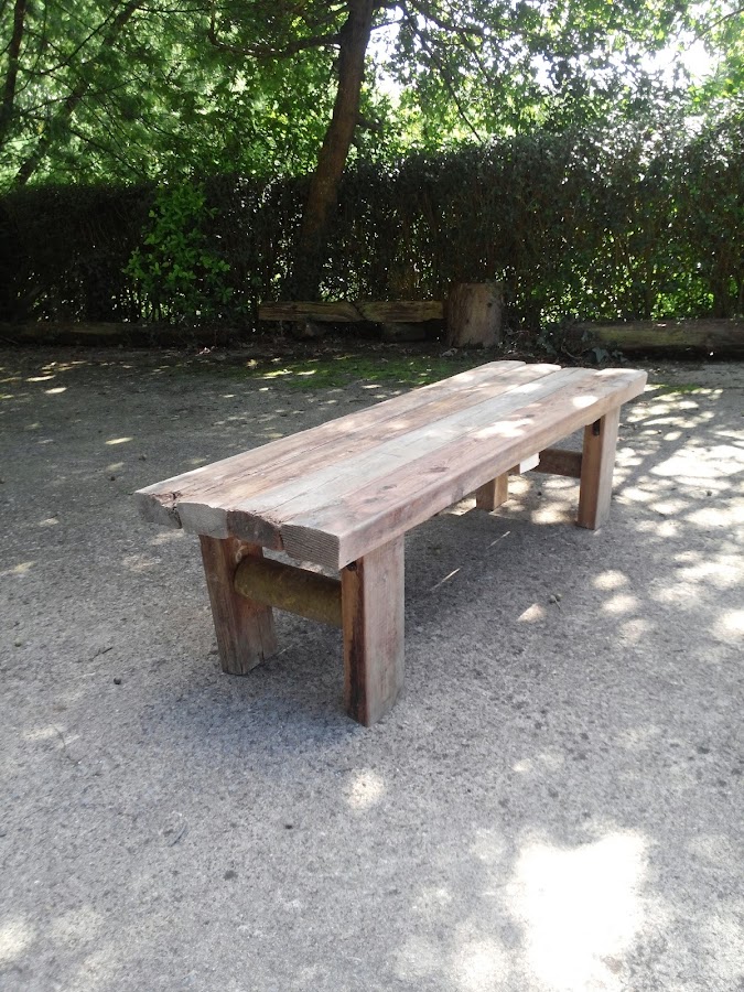 Y ya esta listo! Un banco rustico para poner en el jardin. Aqui os dejo algunas fotos. Espero que os guste.