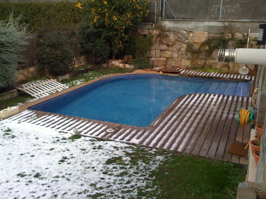 La tarima exterior de Oscarmarti sufre mucho los rigores del invierno, como podemos ver, y Eliot le aconseja aplicar barniz de barco brillante, de gran eficacia y que además se ve muy bonito en los jardines. "El problema es que tienes que lijar la superficie, cómprate o alquila una lijadora grande, porque si no es muy pesado de hacer. Luego de lijar, limpias el polvo, le das una mano generosa de imprimación y luego el barniz. No hay problema con la respiración de la madera: le estás dando por una cara".
