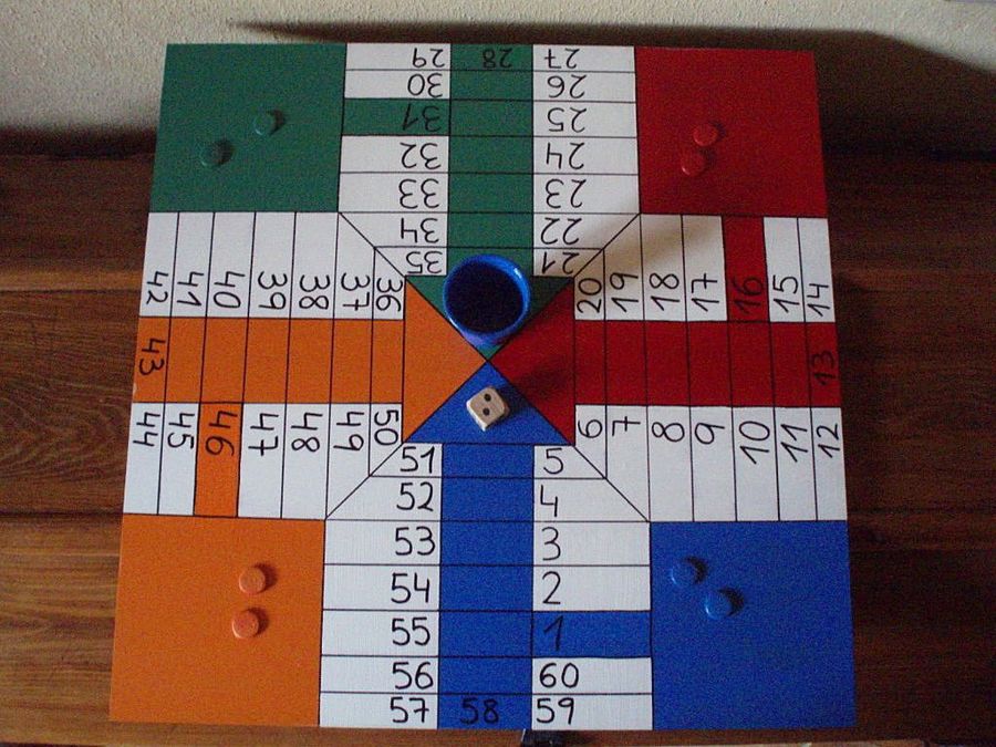 Finalmente, la galería de trabajos destinados a porches, jardines y terrazas se completa con una pieza sencilla pero muy especial: el tablero de parchís, estrechamente asociado a vivencias jubilosas y trepidantes de las vacaciones. La autora es Mairub: "Le hice un parchís a mi niño a su medida (tiene 3 años), y siempre me gana; sólo usé un tablero y pinturas, el dado me lo hizo mi marido, las fichas las pinté, y el cubo es un vaso de plástico pintado con esmalte acrílico y barniz".