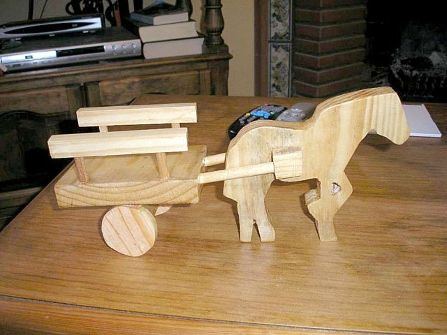 Otro deliciosa pieza de nuestro amigo Chapuzas S.A., que muestra ingenio y sobriedad en el montaje de los típicos recortes de taller. La silueta del caballo, sencilla pero bien trabajada, completa un juguete que también podría servir como adorno.