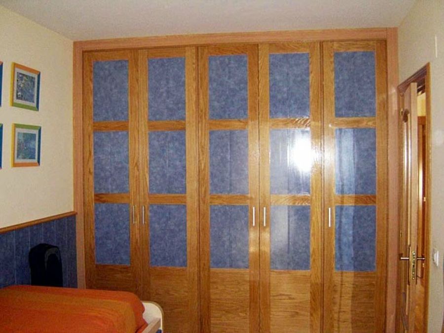 Finalmente Maitech nos ofrece el armario que ha hecho su marido en la habitación del niño. El hueco estaba vacío, de modo que hizo el interior y las puertas. Instaló después un friso azul en la pared, a juego con los colores de los paños.