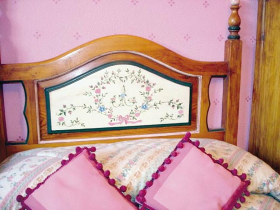 Galerna pintó también todos los muebles de la habitación, incluyendo el cabecero. ¡Qué trabajo más delicado ha conseguido en los adornos con flores!