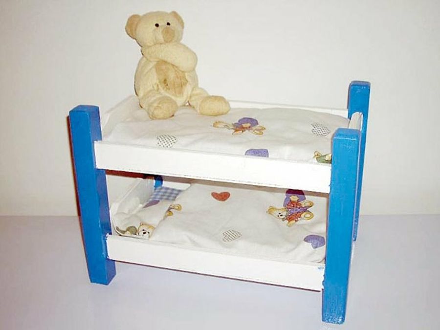 De nuevo, un divertido trabajo del laborioso bricolega Chapuzas S.A: ¡un dormitorio completo para el osito de su hija, con litera, armario y cambiador! Sin duda, los niños deben pasarse las Navidades suspirando por los regalos de nuestro amigo.