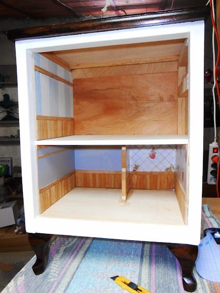 Hasta aquí la recuperación del mueble, a continuación el proceso en fotografías de como convertirlo en una casa de muñecas.