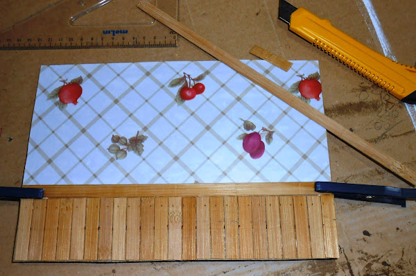 Seguidamente sustituí la tapa con marquetería de 5 milímetros, dando forma a los cantos, encole la nueva pieza con ayuda de unas pinzas y corte una puerta a la medida del hueco.