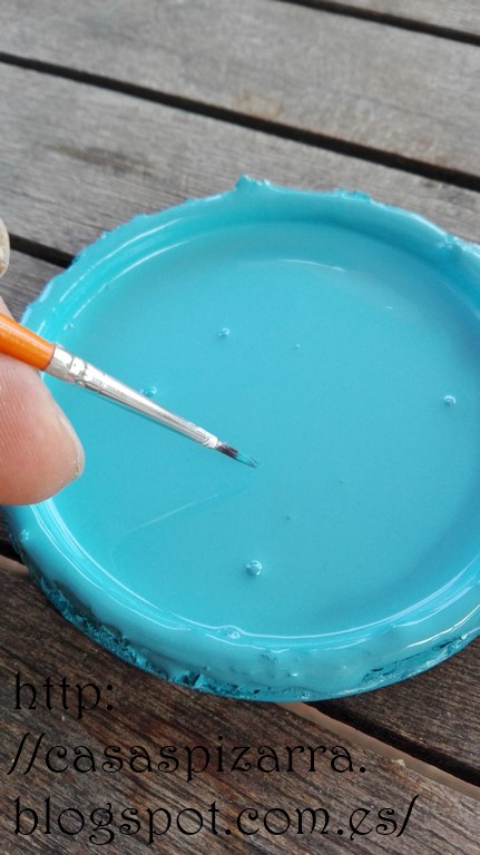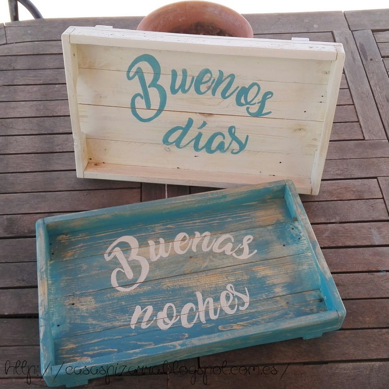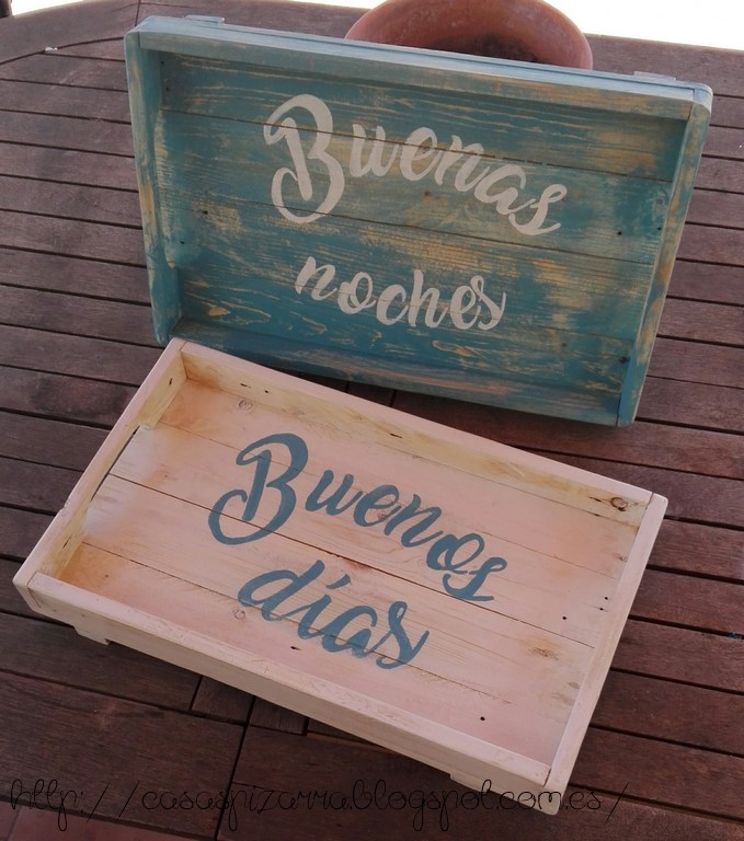 Ya con las dos bandejas totalmente montadas y lijadas las pintamos, una de color blanco lino, la otra de color azul