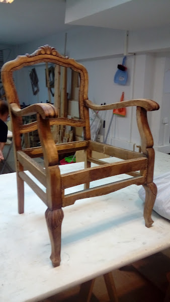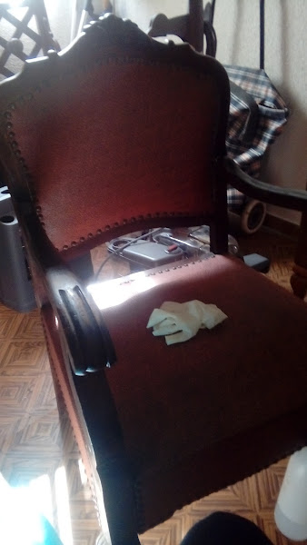 Asi está con media limpieza. Cuando termine de limpiar la barnicé a muñequilla con goma laca. Ya después procedi a poner la tapiceria.