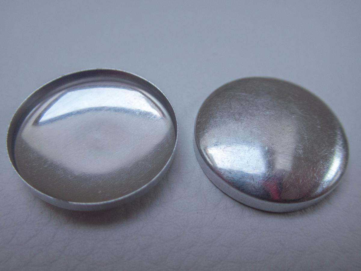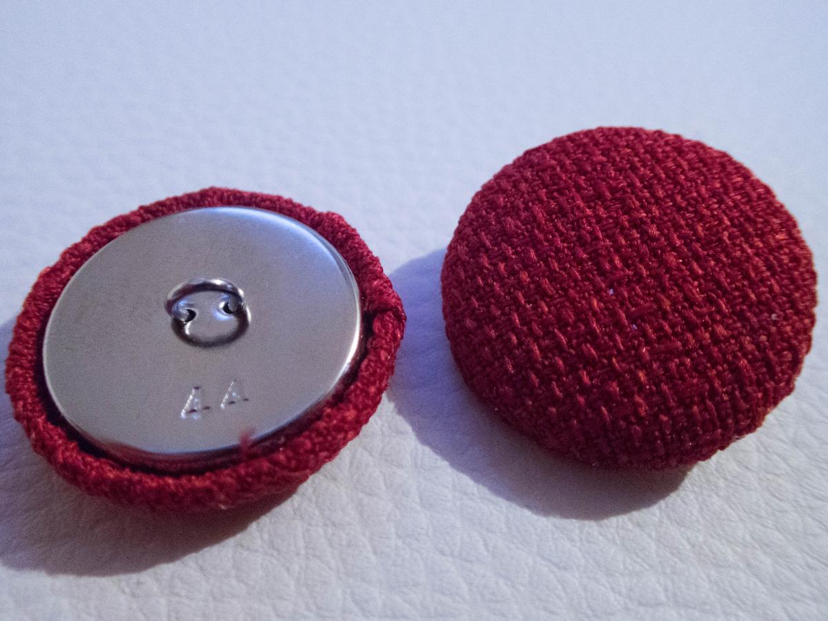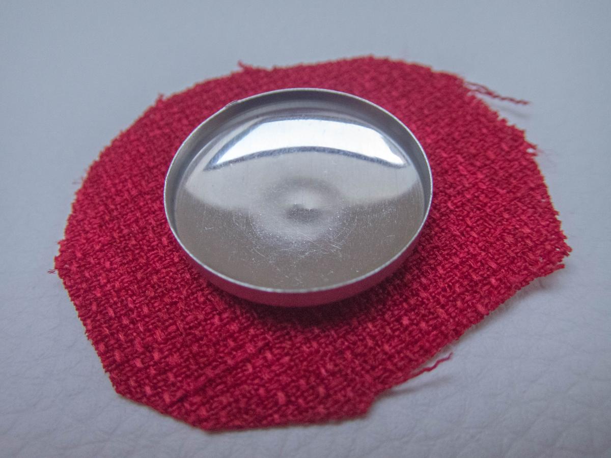 A tal fin compraremos botones para forrar que tienen dos partes desmontables y que encajan entre sí, como podéis ver en la foto. Forrar botones es sencillo pero entretenido y hay muchas técnicas para hacerlo, yo he cosido el sobrante frunciéndolo para que quedase recogido.