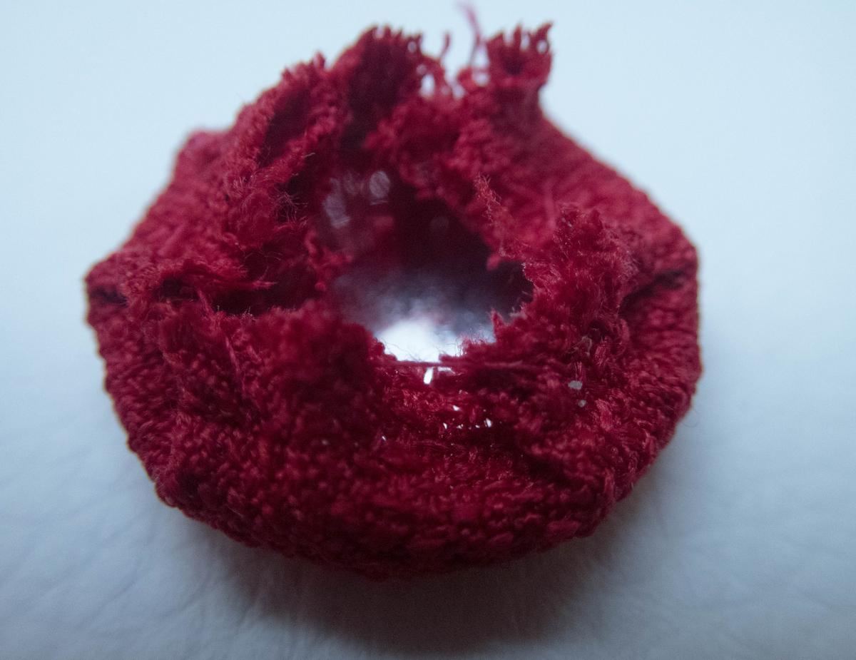 Para terminar realizaremos el decorado conocido como capitoné, que consiste en insertar botones forrados en tela de forma muy tirante, para que al apretar el relleno cree un efecto de relieve.