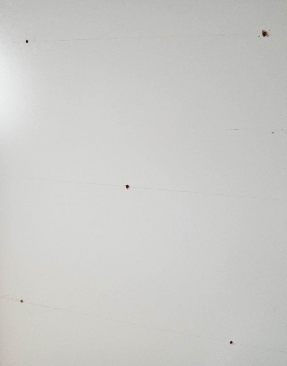 Con los botones ya forrados lo siguiente es marcar su posición en el tablero (esto también se puede hacer al principio). Hay que medir cuidadosamente su posición para que queden centrados y a igual distancia entre sí. Una vez están marcados procedemos a realizar los agujeros con un destornillador y así no destrozar la tela que ya hemos colocado.