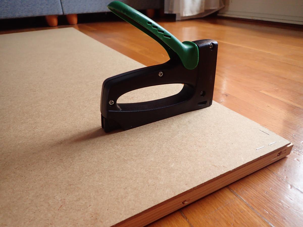 Por último colocaremos el tejido exterior elegido y lo uniremos también con la grapadora.