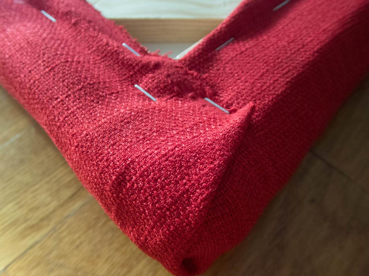 La segunda capa es un tejido con relleno acolchado cuya finalidad es dar uniformidad y suavizar la dureza de las esquinas de madera. La fijaremos también mediante grapas.