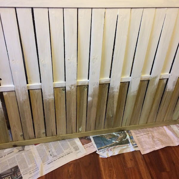 ¡Una valla de jardín! Si, una celosía o panel de madera trenzada natural muy básico, sin barnizar ni nada, una madera muy parecida a la de los palets que están tan de moda pero mucho más fina (no quería que ocupase mucho espacio detrás de la cama) y ligera, que se pueda colgar a la pared.