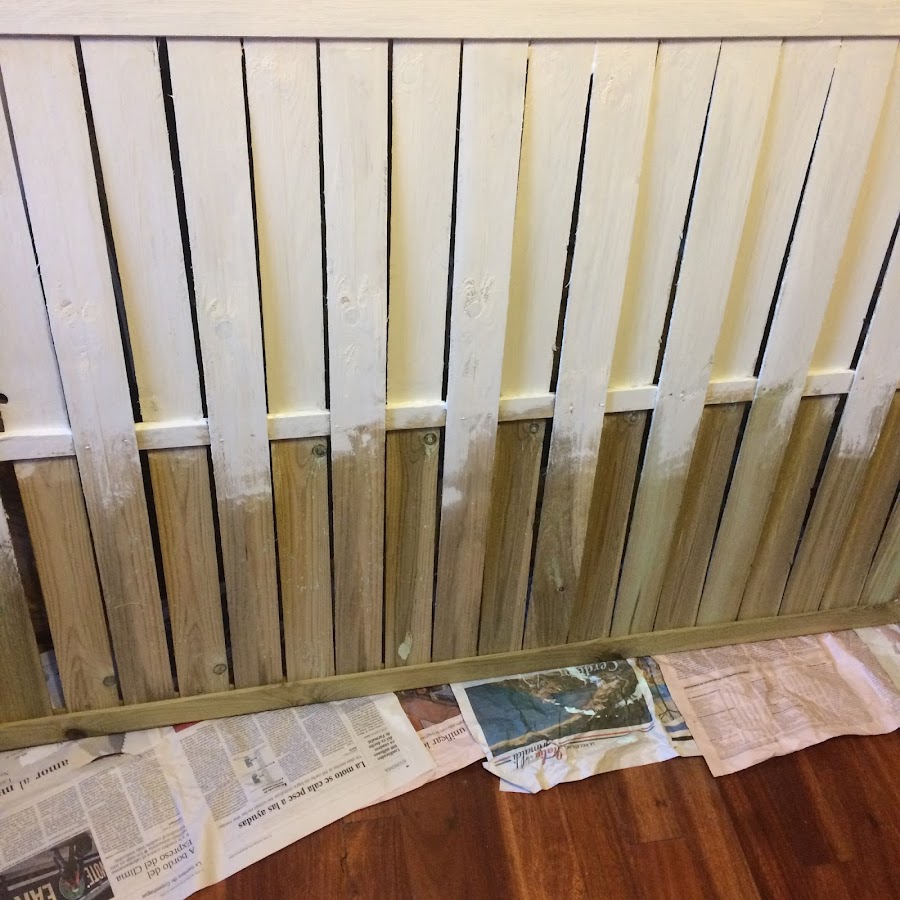 A continuación lo pinté pero esta vez con brocha en vez de con rodillo y le di solamente una mano, no quería un acabado muy cargado y no me importaba que quedasen imperfecciones, ese era el efecto que buscaba sin llegar a utilizar la técnica del desgaste con lija ni nada de eso.