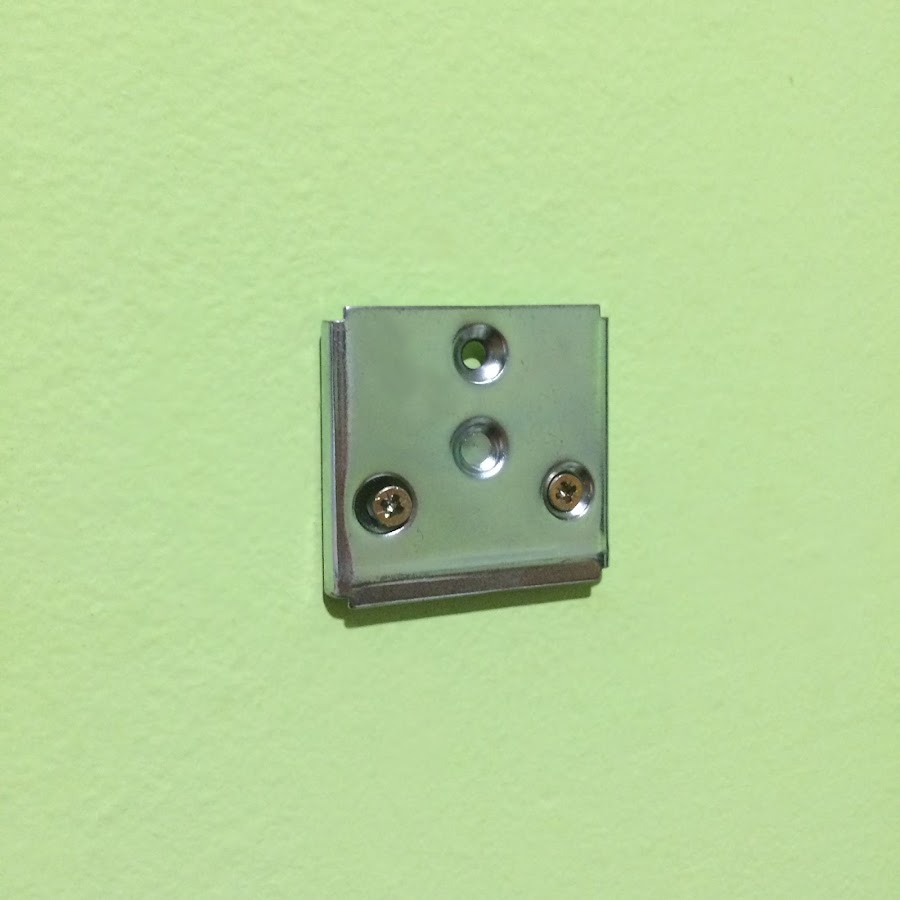 Añadí también a la compra un sistema para pendular armarios muy simple que consiste en dos plaquitas de metal que van ancladas a la pared y otras dos que van atornilladas a la valla-cabecero. Una encaja en otra así que quitar y poner el cabecero es tan fácil como descolgar un cuadro de la pared, no pesa nada. Eso si, cuidado al hacer los agujeros en la pared con el taladro, tomad bien las medidas antes de nada.