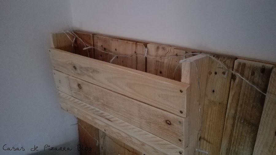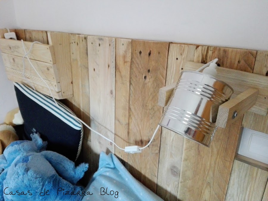 El resultado es un cabecero de cama para una habitación de un niño, en ese cabecero adosamos una lámpara muy, muy casera, también le pusimos un cajón para colocar un ordenador portátil.