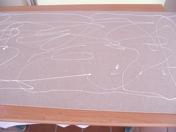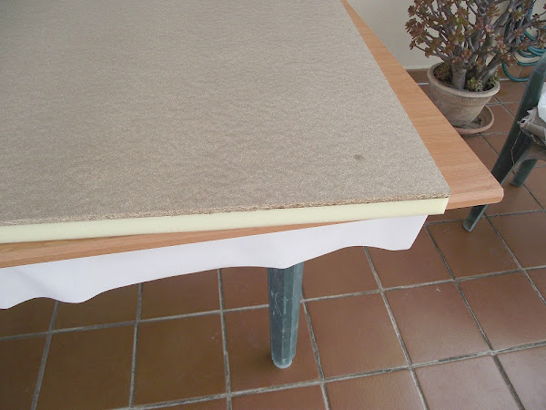 Para tapizar es imprescindible buscar una superficie grande y plana, porque hay que ir tensando la tela y si no es muy complicado y no queda bien. Yo coloqué encima de la mesa de la terraza un tablero que tenemos para las ocasiones en que nos juntamos mucha gente a comer y ahí estuve trabajando estupendamente.