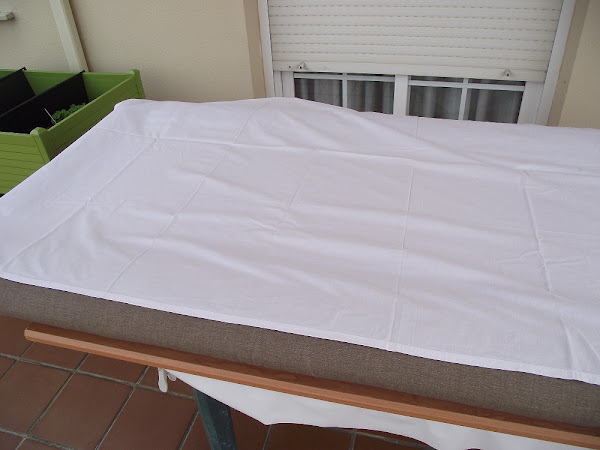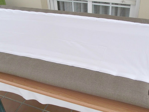 En Leroy Merlin compré el tablero de aglomerado de 10 cm de espesor, que fue el que me recomendaron para que el cabecero no abultase mucho (mi habitación no es muy grande). Y en un almacén, Tiendas Pavo, la plancha de espuma y dos metros de miraguano. La tela la compré en el mercadillo ¡¡a 2 euros el metro con ancho doble!!. Para mí es un misterio cómo pueden vender tan barato. Total, que incluídos los herrajes para colgar en la pared no ha llegado a 30 euros. Y por ese precio bien se puede tener un cabecero después de 14 años, ¿no?.