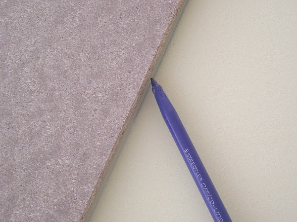Coloqué la plancha de espuma y encima el tablón de aglomerado. Con un rotulador fui marcando el contorno del tablón sobre la espuma y corté lo sobrante, de manera que la plancha de espuma quedase de la misma medida que el tablero.