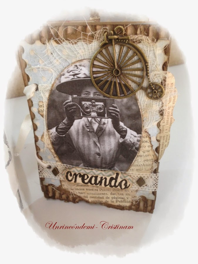 He utilizado técnicas como la vela, transfer, craquelado natural,troqueles embosados , etiquetas metálicas...
