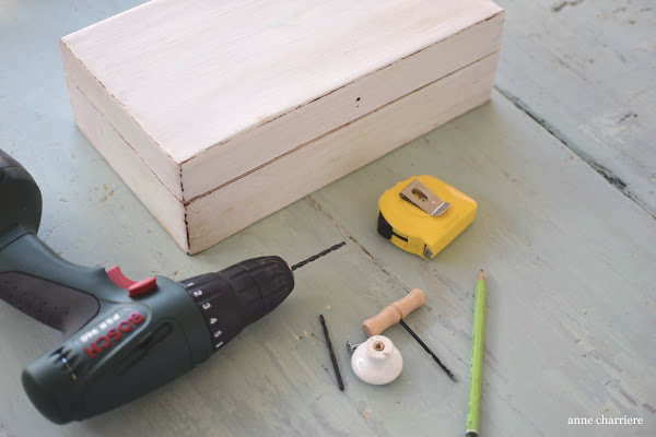 Un día mi madre se compró una caja de infusiones, las de los que se venden bonitas, con todos los compartimentos y que se cierra. Incluso tenía una chapa de la marca PAGÈS, muy popular en Francia. Por supuesto se la pedí en cuanto terminó todas las bolsitas de infusiones y la he ido usando hasta ahora. Primero la pinté de blanco porque era color madera marrón oscuro y me parecía un poco triste. El otro día, decidí que había que darle otro tuneo y añadirle detalles...