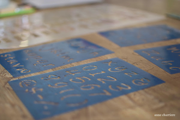 El color Aubusson de A. Sloan es mi preferido, sobre todo para hacer piezas pequeñas y/o interiores de muebles así que no me lo pensé. Para la parte de arriba, quise dar un contraste y utilicé el Louis blue. Para los números, utilicé una plantilla de estarcir de Lucía y para las letras, pinté a mano con las de Michaels; no tengo un pulso muy preciso que digamos pero no ha quedado demasiado mal.