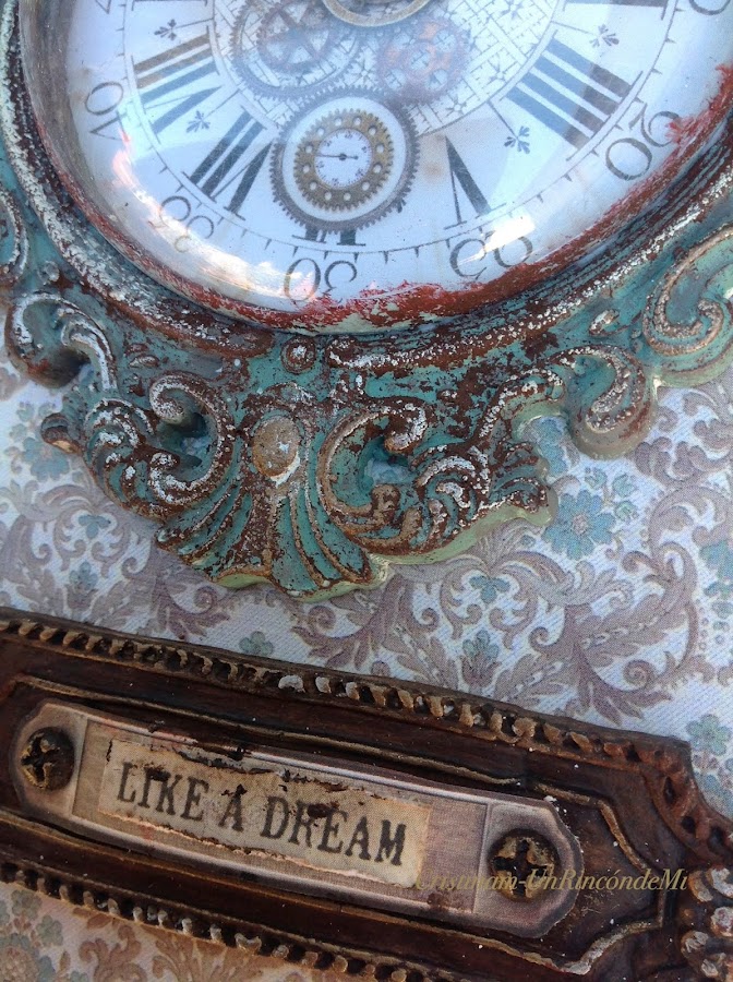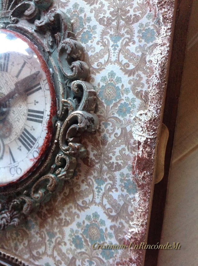 Con tonos de la misma gama he decorado el marco que rodea al reloj y he rematado con ceras de varios tonos...