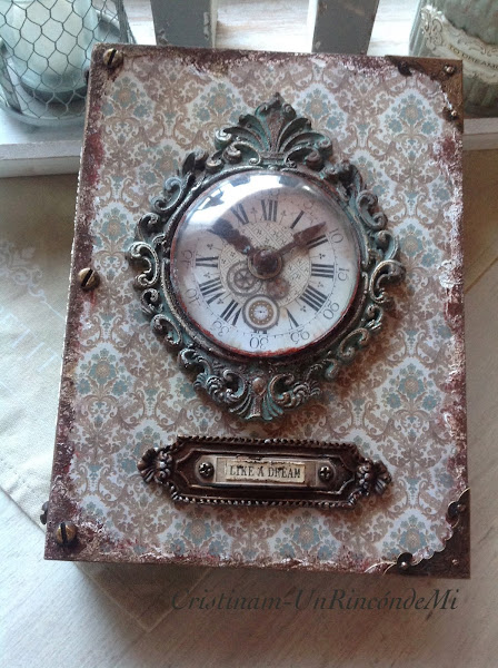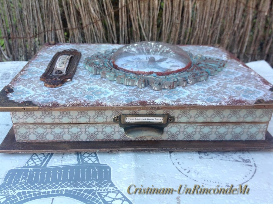 Se trata de una caja libro decorada con distintas técnicas pero todas ellas en estilo Vintage.
