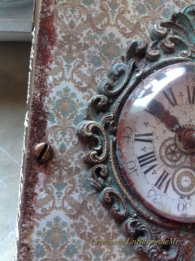 Toda la caja tiene detalles en cada esquina ... textura rugosa, efecto óxido.. craquelado....