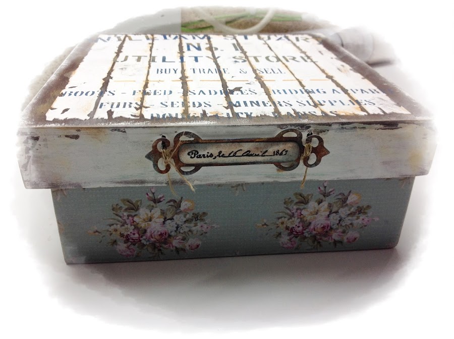 Cada lateral de la caja es distinto.. incluso los dos laterales que tienen el motivo de flores de cerca se ven distintos ya que uno es decoupage y el otro es transferencia!!