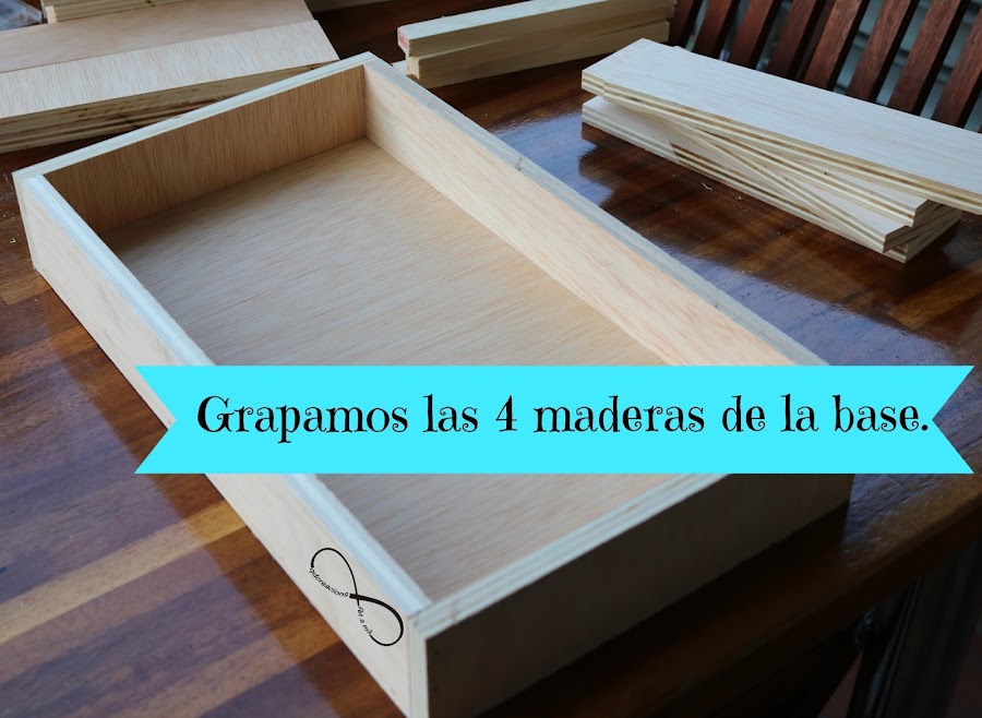 Aquí véis las 4 maderas ya grapadas, yo empecé por las más largas y después las cortas.