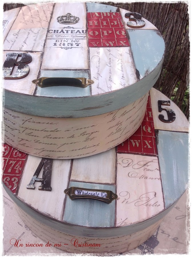 He decorado las cajas en colores suaves , desgastados y he puesto distintas técnicas en ellas.