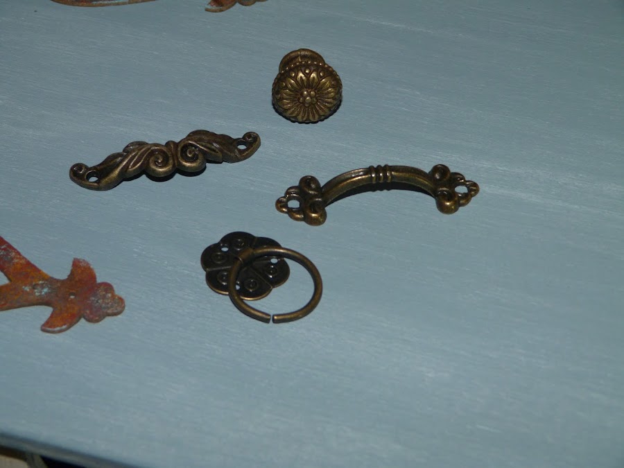 Tengo distintos tiradores pequeñitos envejecidos, y aún me estoy planteando si ponérselos, alternando los modelos en distintos cajones, o sería recargar demasiado la cajonera... qué opináis?