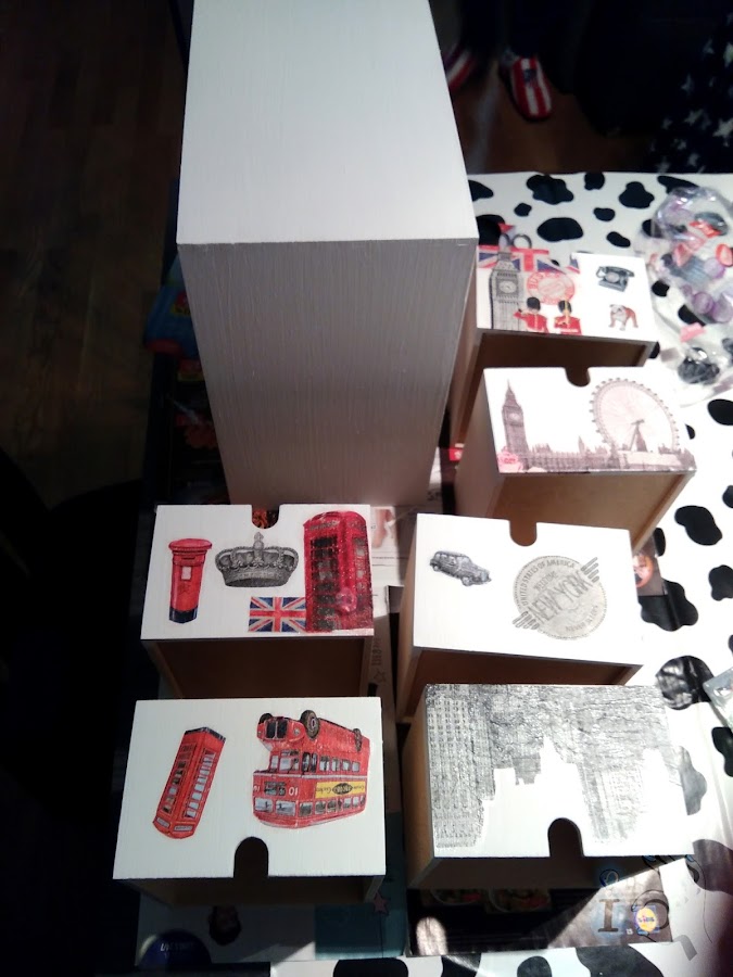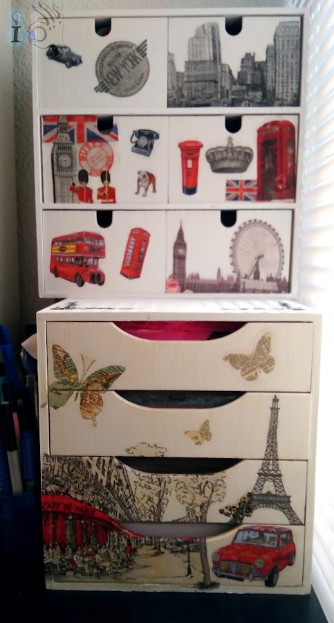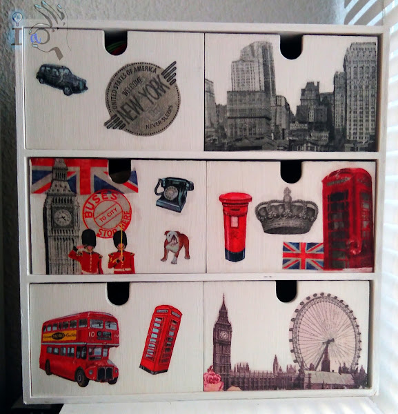 En cuanto a la otra cajonera la voy a decorar con motivos de Londres y Nueva York, van a ser mis cajoneras viajeras!!