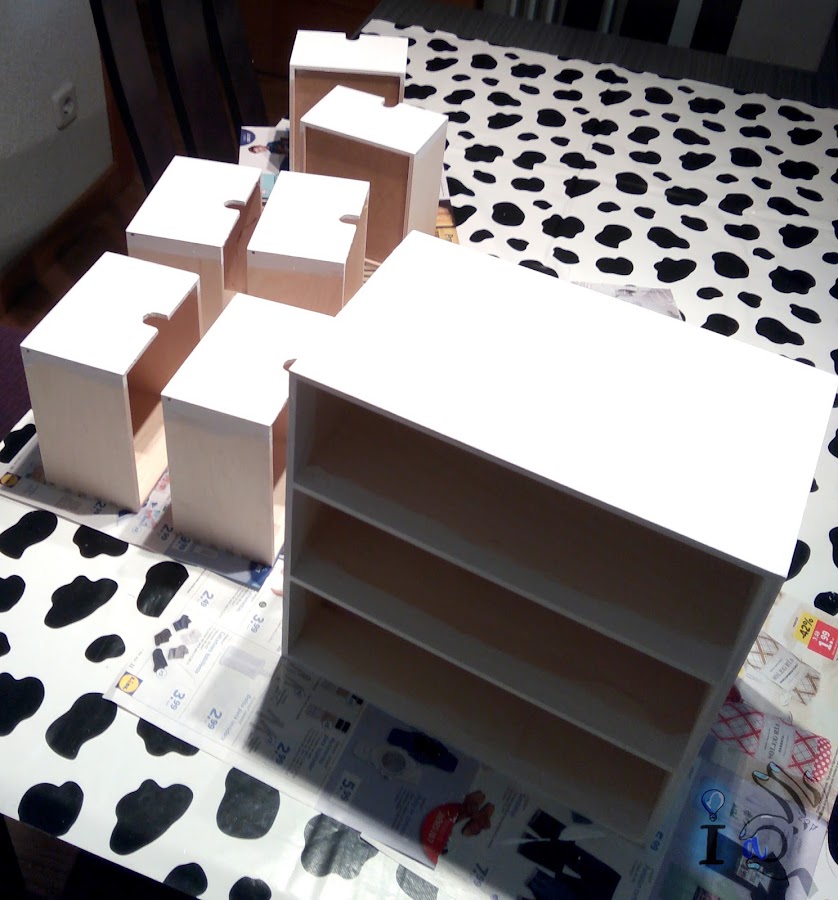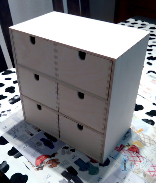Estas son las dos cajoneras que he decorado, una con cajones tamaño folio y otra con cajoncitos más pequeños del primo sueco.