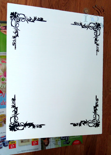 Y luego, intento hacer encima, en las 4 esquinas un motivo con unas plantillas de stencil con pintura a la tiza negra: