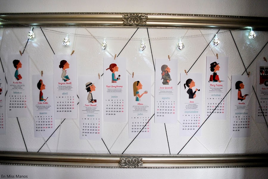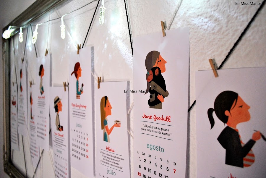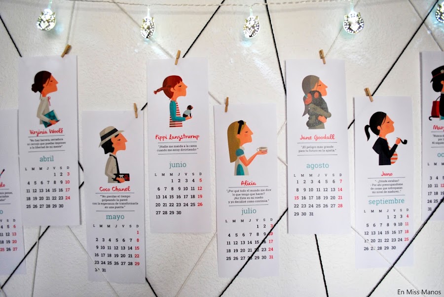 Cada mes tiene la ilustración de un personaje distinto que todos conocemos, y todas ellas mujeres, con una de sus frases escritas bajo ellas. me encanta!!