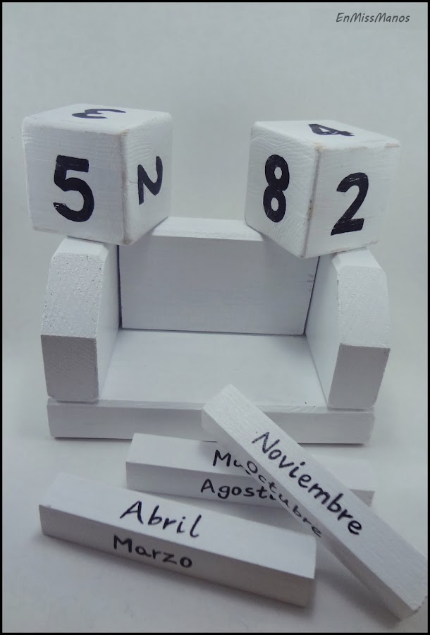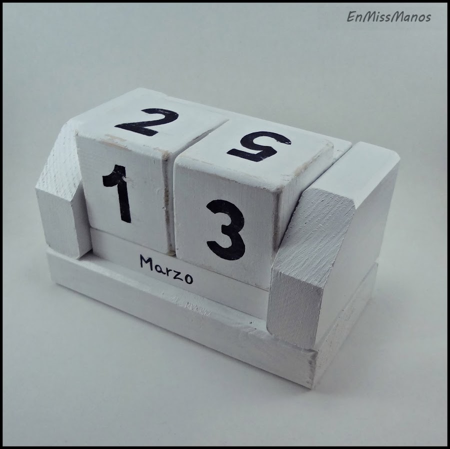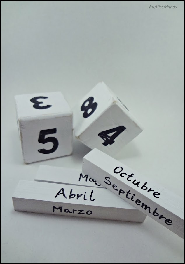 Llevaba tiempo detrás de hacerme un calendario perpetuo parecido a este, pero no encontraba listones cuadrados en la basura para hacer los cubos (si me puedo esperar para no comprar nada, mejor :) ), hasta que el otro día tuve un golpe de suerte y tachán! allí estaban esperándome unas maderas de pino y un listón súper largo blanco y cuadrado, encima del tamaño ideal.