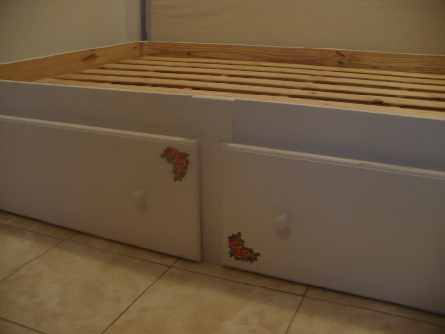 Toda la estructura fué pintada de blanco y colocamos unos detalles de decoupage en el frente.