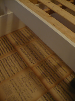 En su interior forramos los cajones con partituras antiguas para que guarde sus zapatos y frazadas que ocupan espacio en su placard.